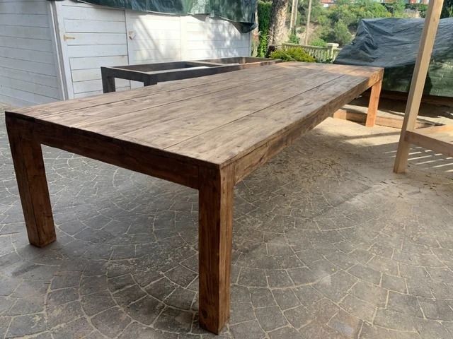 Mesa madera estilo rústicas granja ideales para tu casa o negocio. Fabricadas bajo pedido en madera maciza. Aptas para interior o exterior. Robustas de fabricación artesanal opción de medidas y colores. Sobre madera maciza 2cm patas madera viga 10x7cm. Medidas del precio de este anuncio: 220x90x75cm.