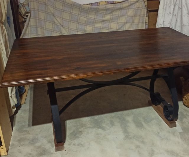 Mesa comedor rústica. Totalmente artesanal y robusta. Madera y forja 155 ancho 100 largo 76 altura