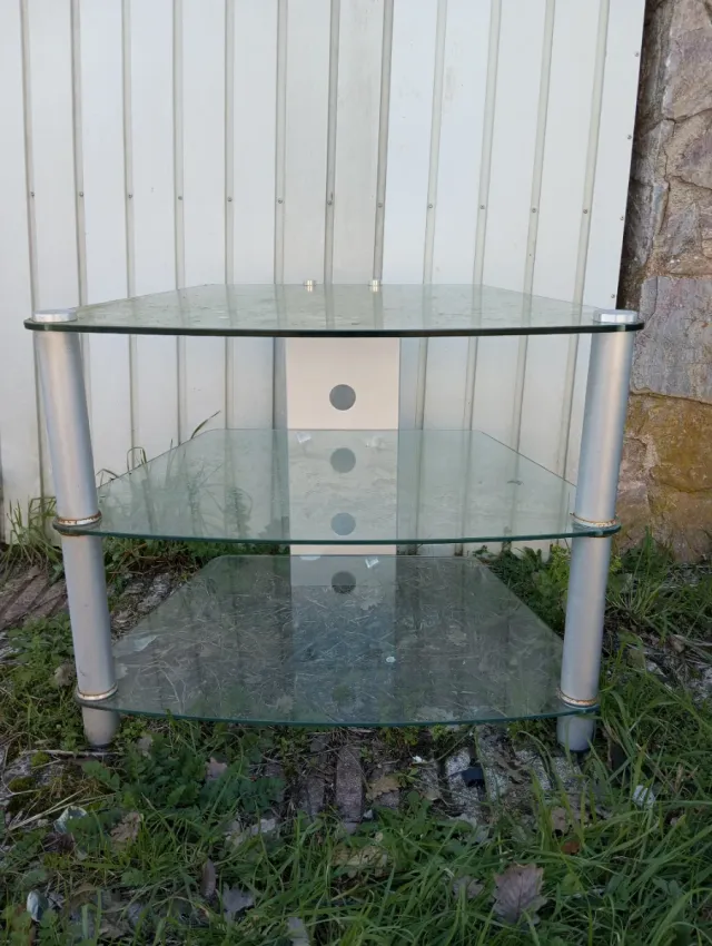 Mesa TV cristal 3 baldas.