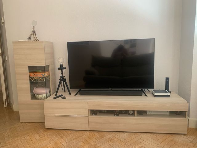 Detalles del productoMueble de salón para televisor en color madera claro. Está en muy buen estado y es perfecto para cualquier salón.