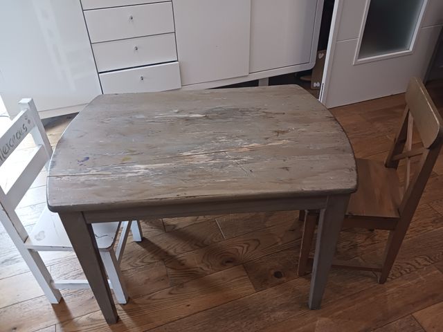Detalles del productoConjunto de mesa y dos sillas de madera, perfecto para que los más peques jueguen y ensucien sin problema.
