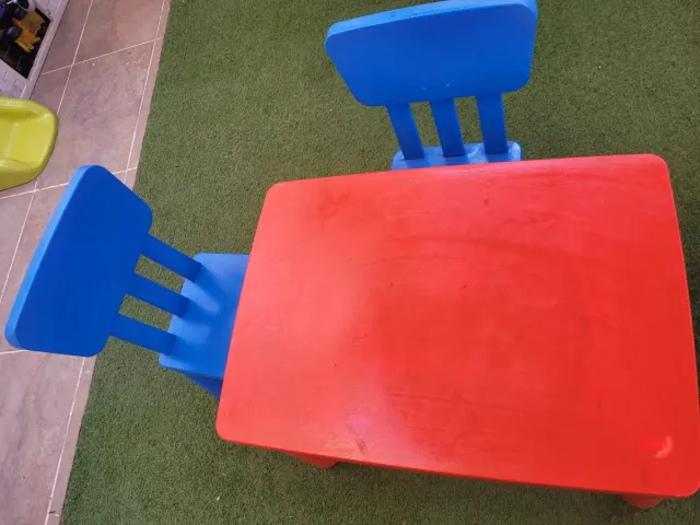Detalles del productoConjunto de mesa y dos sillas infantiles, ideal para que los más pequeños jueguen o hagan sus manualidades. El diseño es de IKEA.