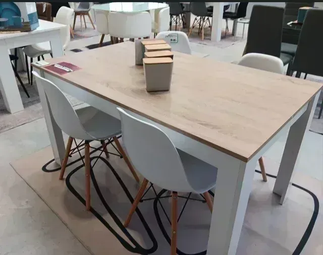 Detalles del productoOFERTA. PACK AHORRO COMEDOR. Elegante, moderno y economico conjunto de comedor formado por mesa de 138x80cm, disponible en color blanco-cambria, blanoco o gris y 4 comodas sillas de estilo nordico, en color blanco, negro o gris. Nuevo, directo del fabricante,