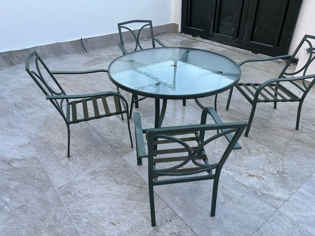 Mesa y 4 sillas de terraza cristal y aluminio