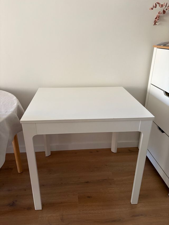 Detalles del productoConjunto de mesa y cuatro sillas de Ikea. Ideal para comedor o cocina.Se vende mesa TONSTAD ikea extensible, 80/120x70 cm y 2 sillas blancas con forro asiento gris NÄSINGE ikea. Se puede quitar y lavar. Se vende por mudanza. se hace foto del desgaste por uso Medidas del producto