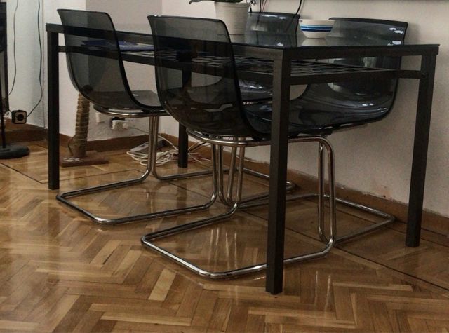 Mesa y 4 Sillas Ikea Cristal y Metal