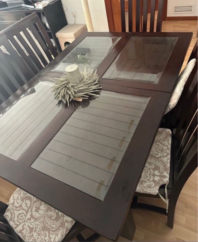- Mesa con superficie de cristal.
