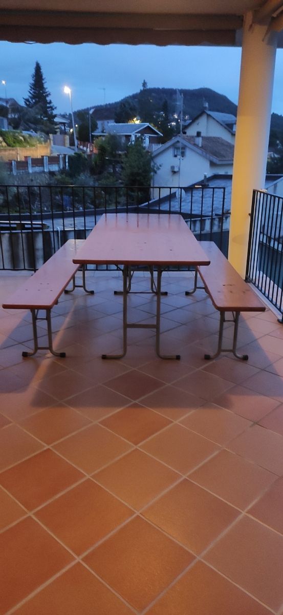 Mesa y bancos pino para exterior