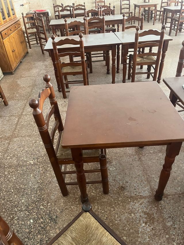Detalles del productoVendo conjuntos de mesa grande de madera con 4 sillas por 60 €, y otro conjunto de mesa pequeña con 4 sillas por 50 €.