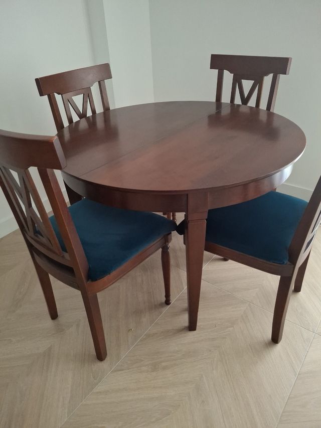 Mesa redonda extensible, y 4 sillas de comedor