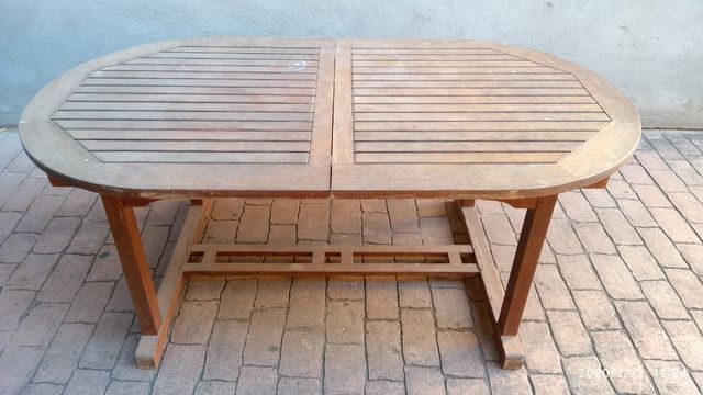 Detalles del productoMesa extensible y 8 sillas plegables de teca. Se vende el conjunto, no por separado. No se hace envíos.