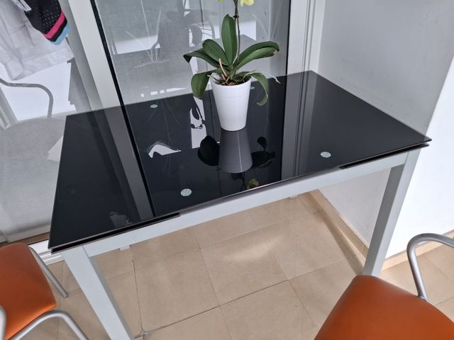 Detalles del productoMesa de 110 de largo por 70 ancho. Abierta gana 30 cm por cada lado. Se puede usar tanto para balcón, terraza, cocina y/o comedor. Es preciosa, está nueva y es buena. Medidas del producto