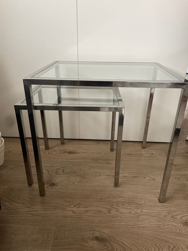 Mesas auxiliares cristal y acero inox