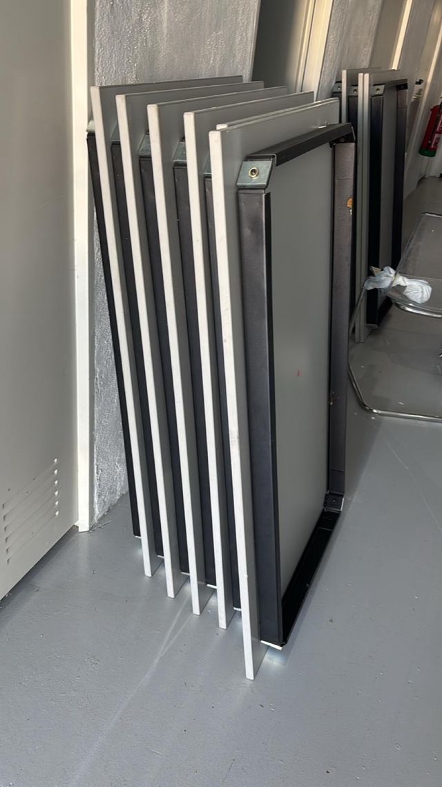 Detalles del producto9 mesas con diseño moderno y funcional con estructura de metal resistente, superficie lisa y fácil de limpiar y patas estables. Medidas 120cm de largo, 70cm de ancho y 75cm de alto. URGE VENDER SOLO TENGO HASTA FINAL DE MES. Se pueden vender por separado.
