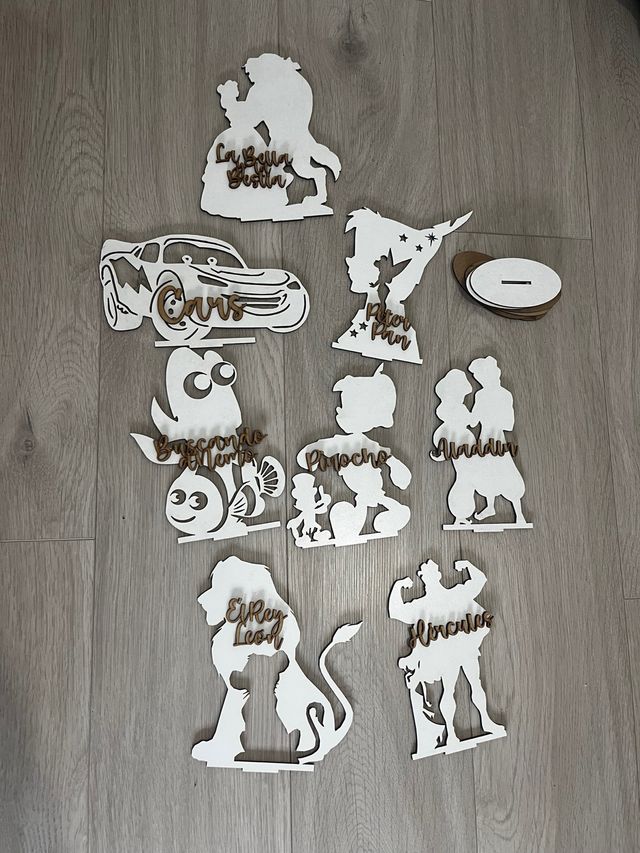 Detalles del productoPreciosos meseros de madera, hechos a mano con motivos de películas Disney. Ideales para decorar una fiesta infantil o evento temático.