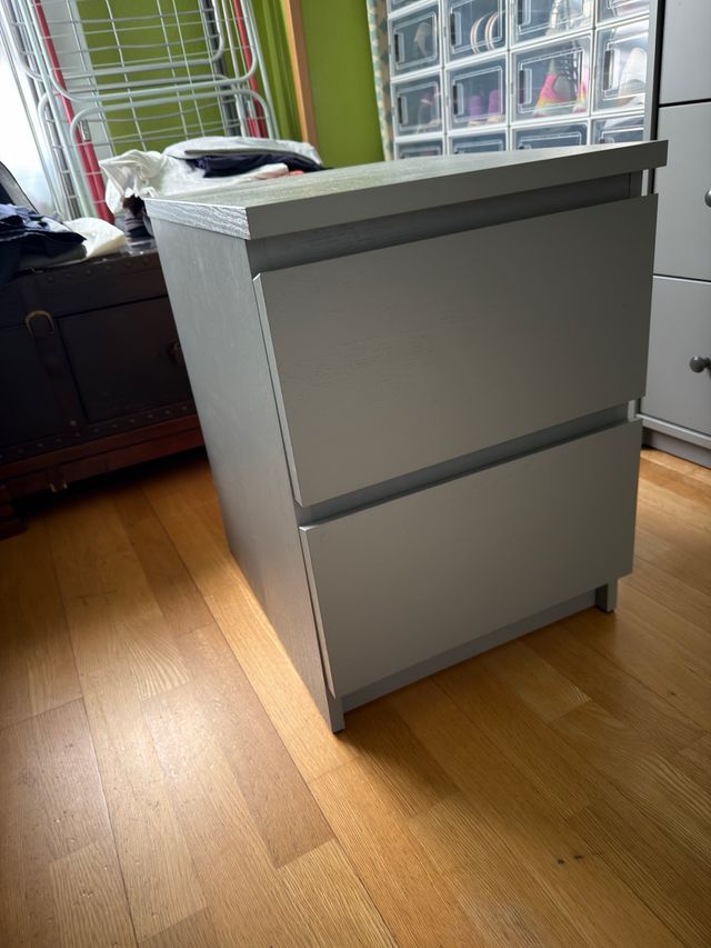 Mesilla de noche gris con 2 cajones