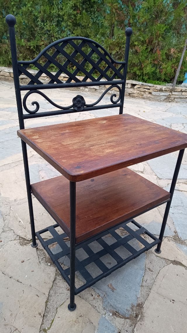 Mesita de noche rustica, mide 52x40cm y 58cm hasta la repisa de arriba y total con el hierro hasta arriba 91 cm