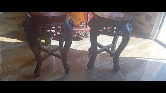 dos mesitas orientales echada a mano decoradas diferentes flores 💐 con maroma envío si