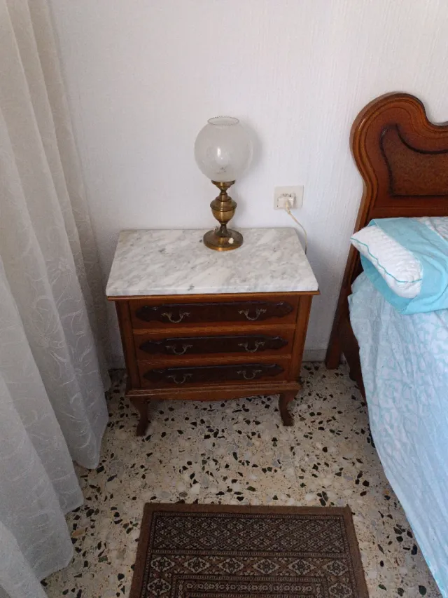 Mesita de noche clásica de madera y mármol