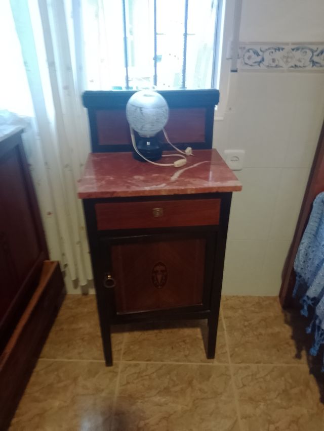 Mesita noche antigua - Madera y mármol