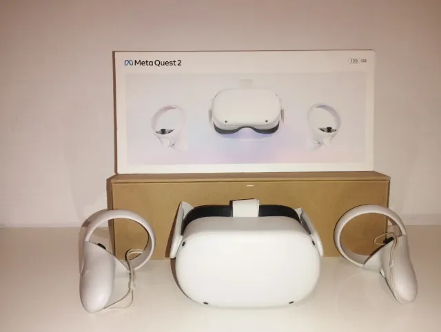 Visor de realidad virtual Meta Quest 2 con 128GB de almacenamiento. - Incluye visor y dos mandos. - Color blanco.