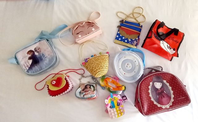 Detalles del productoMonísimos bolsos para niñas, ideales para llevar sus pequeños tesoros. Se venden 10 bolsos en total, de diferentes diseños y tamaños.