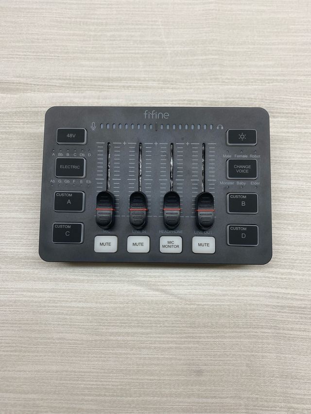 FIFINE Mezclador de Audio, RGB Streaming Gaming Audio Mixer PC con Interfaz de XLR, Gaming Audio Mixer con Control Individual, Control de Volumen, Botón de Silencio, Alimentación Phantom de 48V
