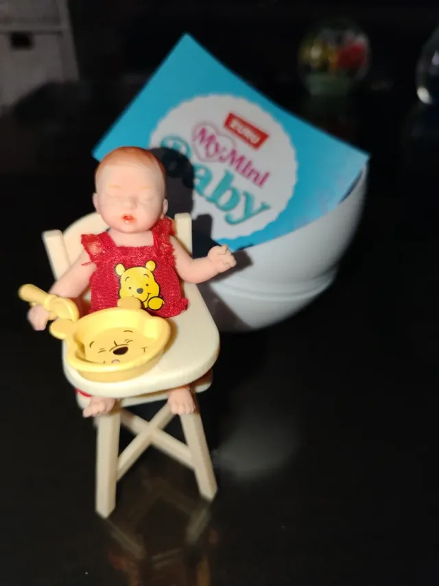 Muñeco bebé de la colección My Mini Baby de ZURU. Viene con su trona y accesorios para comer. - Muñeco bebé. - Trona. - Plato y cubiertos.