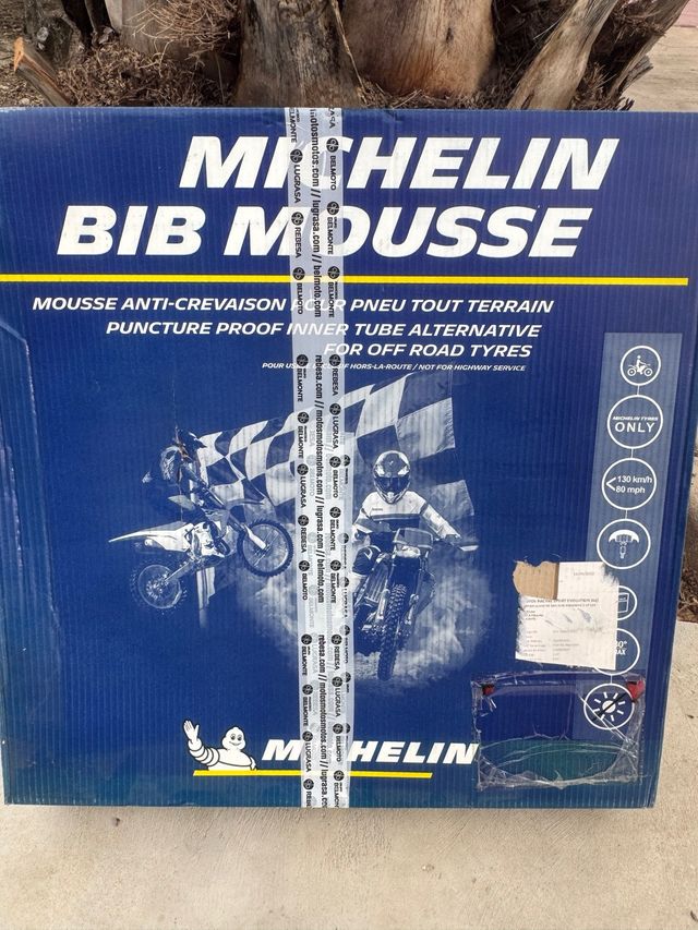 Michelin Bib Mousse para moto, sin usar. se vende la pareja. medidas en la fotos. - Para todo tipo de terreno. - Sistema anti-pinchazos. - Producto nuevo en caja.