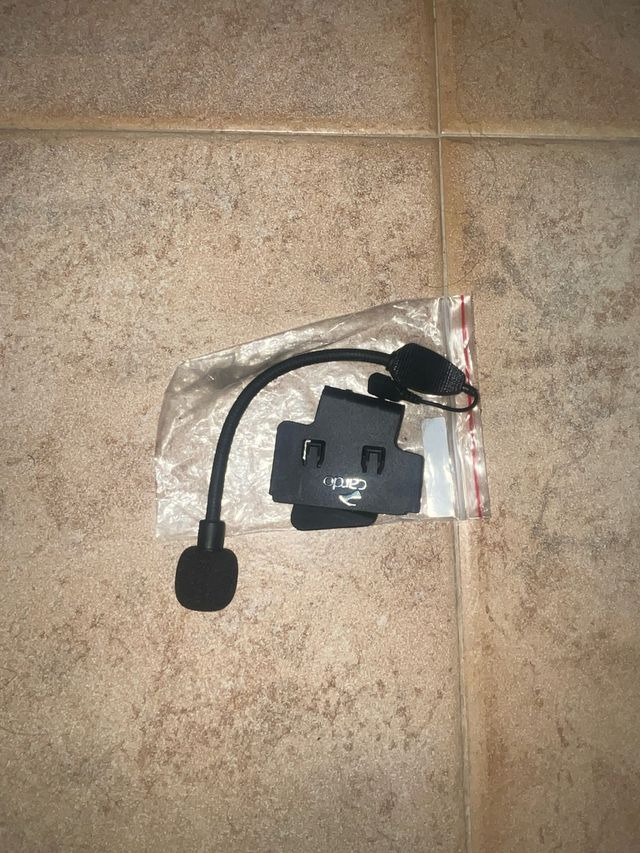 Micrófono de repuesto para casco modular Cardo Spirit. Incluye clip de montaje. Sin usar. - Micrófono con brazo flexible. - Clip de sujeción para casco.