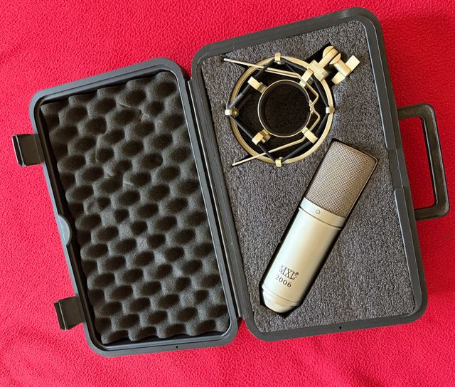 Micrófono de condensador MXL 2006 con su estuche. - Incluye micrófono y soporte. - Estuche con interior de espuma. - Diseño plateado.