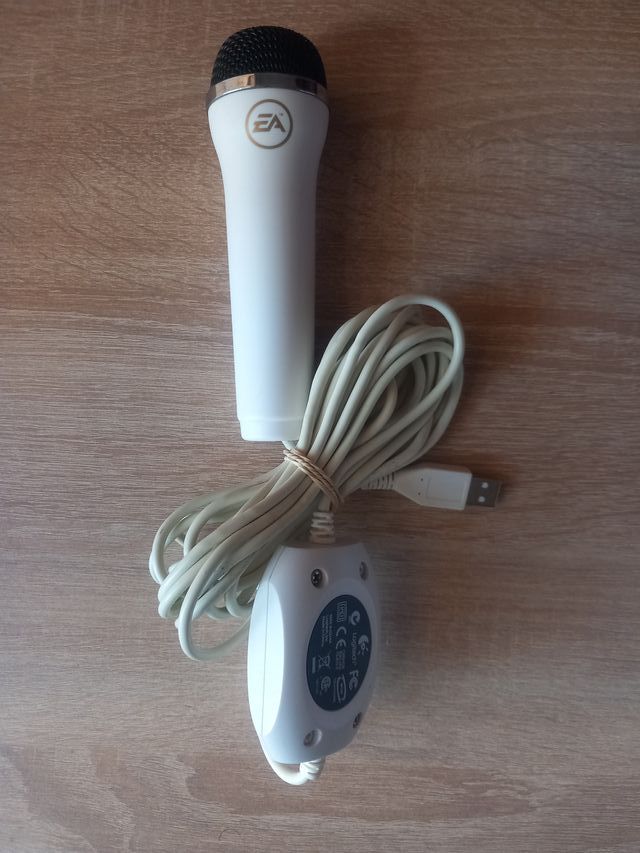 Micrófono blanco con logo EA, diseñado para Wii. Incluye cable USB y un control conector. - Diseño ergonómico. - Conexión USB para mayor compatibilidad.