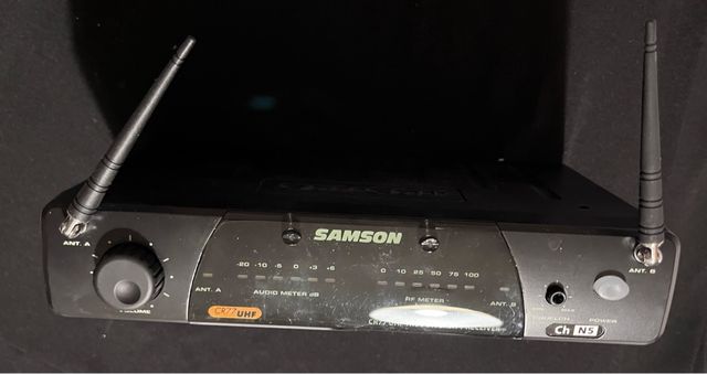 Receptor inalámbrico Samson CR77 UHF. - Antenas A y B. - Medidor de audio y RF. - Control de volumen. - Canal N5.