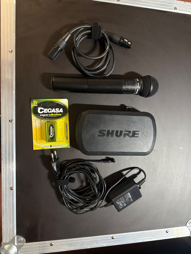 Detalles del productoVendo micrófono inalámbrico Shure SM58, en buen estado. Incluye: - Micrófono Shure SM58. - Receptor inalámbrico. - Cable XLR. - Pila 9V. - Adaptador de corriente. -El micrófono presenta algunas marcas de uso en el cuerpo.