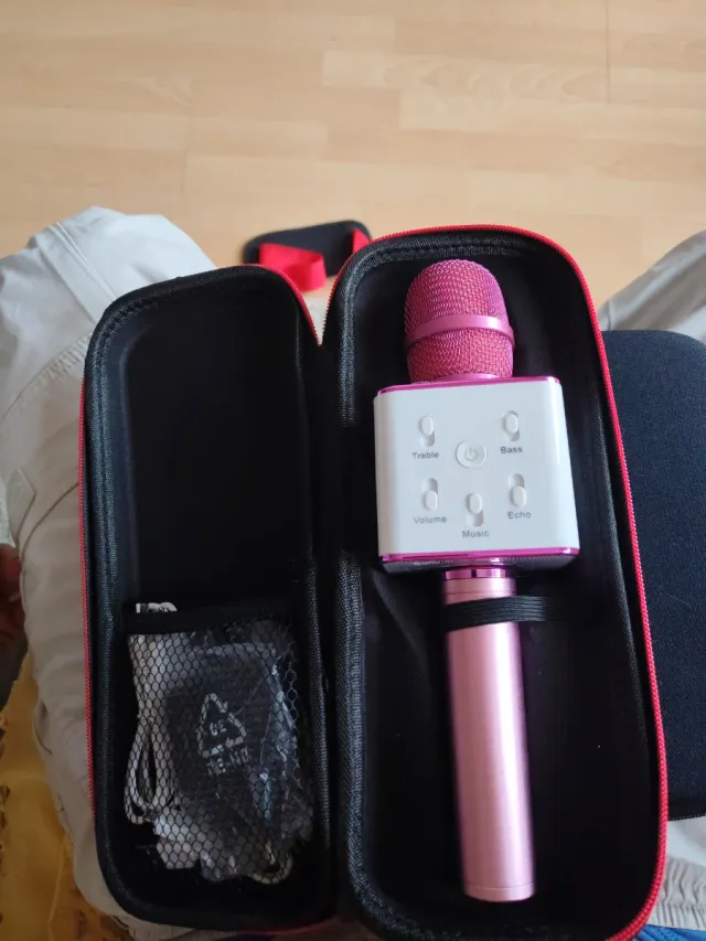 Micrófono Karaoke Inalámbrico Rosa y Blanco