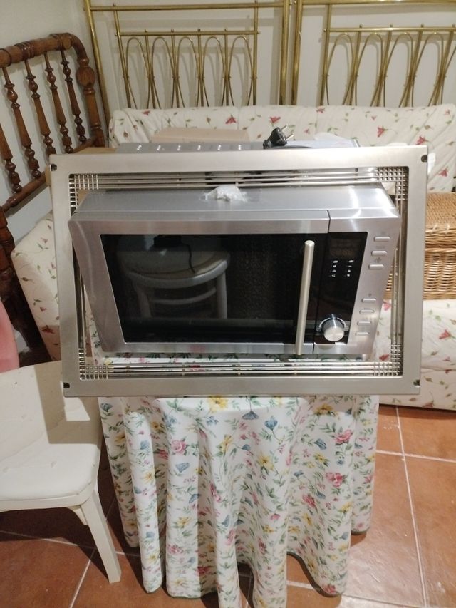 microondas en acero inoxidable. En buen estado. Incluye marco