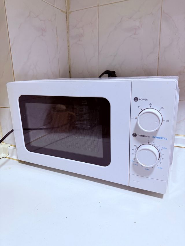 ESCUCHO OFERTAS Microondas de sobremesa - Color blanco. - Fabricado en acero SPCC. - 43.9 x 33.4 x 25.8 cm, 20 L, 700 W, 5 programas, temporizador, plato giratorio: Ø 25.5 cm