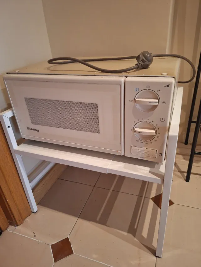 Microondas de la marca Balay en color blanco, con su base a juego. - Incluye base. - Diseño compacto.