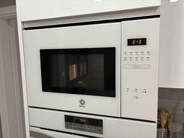 Microondas Balay para piezas. - Color blanco. - Panel de control digital con pantalla. - Puerta con cristal negro.