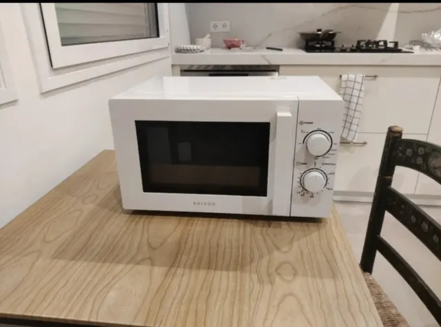 Microondas blanco de la marca SAIVOD, con 4 años de uso. Funciona correctamente excepto el grill. - Color blanco. - Marca: SAIVOD. - Antigüedad: 4 años.