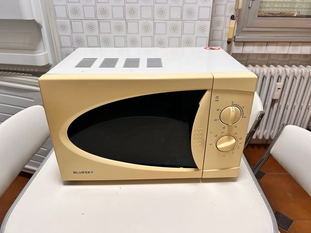 Detalles del productoMicroondas de sobremesa. Funciona correctamente. Ha amarilleado el exterior pero funciona correctamente. Marca Bluesky