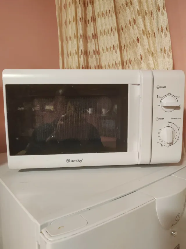 Detalles del productoMicroondas de la marca Bluesky en color blanco. Un electrodoméstico práctico para tu cocina.