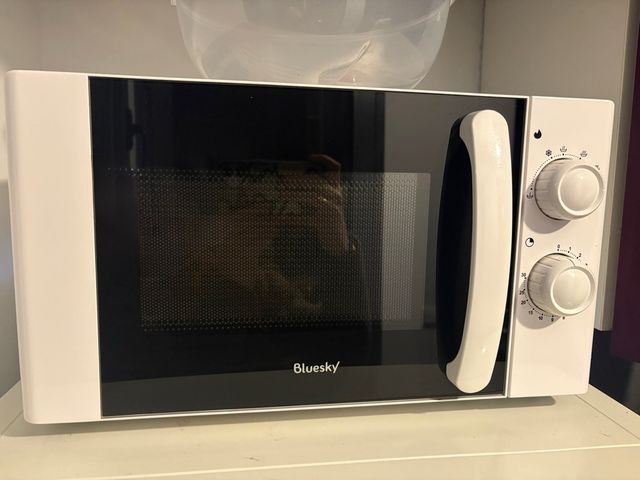 Detalles del productoMicroondas de la marca Bluesky en color blanco.