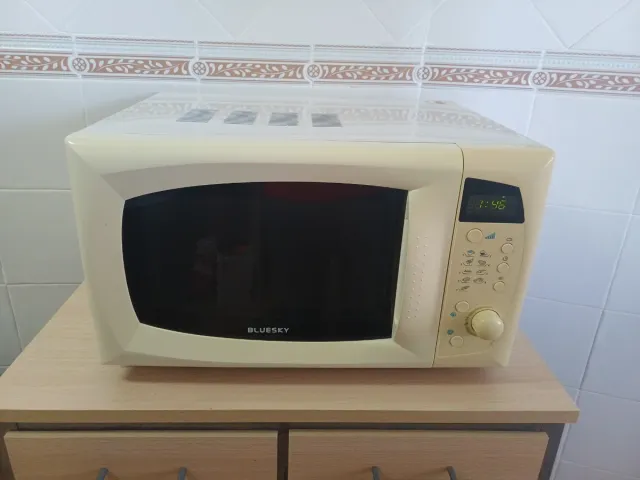 Microondas de la marca Bluesky en color blanco. Cuenta con función grill para mayor versatilidad. - Color blanco. - Función grill.