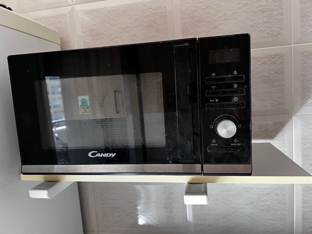 Microondas Candy en color negro, con un diseño moderno y elegante. - Puerta de cristal. - Panel de control digital. - Botón de inicio rápido.