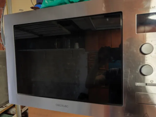Microondas de la marca Cecotec con acabado en acero inoxidable. - Diseño moderno y elegante. - Panel de control intuitivo.