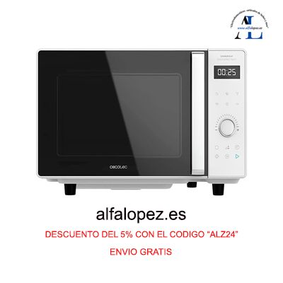 Microondas Cecotec en color blanco, con un diseño moderno y digital.