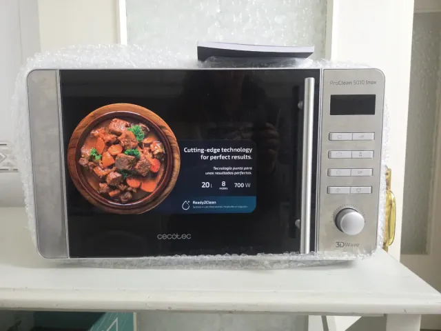 Detalles del productoMicroondas Cecotec ProClean 5010 Inox con capacidad de 20 litros y 700W de potencia. Cuenta con tecnología 3D Wave y Ready2Clean para una limpieza más sencilla.