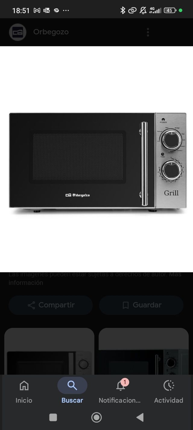 Detalles del productoMicroondas Orbegozo con función grill. Diseño moderno en color negro y acero inoxidable.