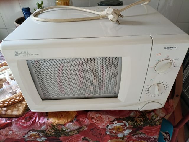 Detalles del productoMicroondas Daewoo en buen estado, listo para usar. El botón de abrir la puerta se sale al cerrar pero no afecta al funcionamiento.
